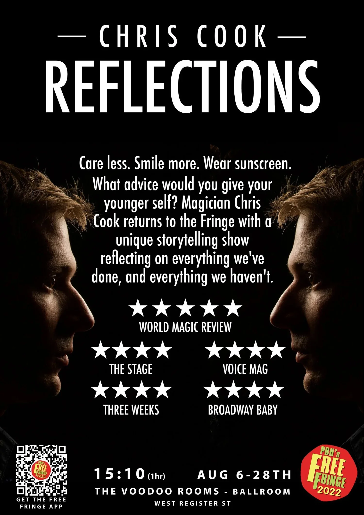 Reflections debuted at the 2022 Edinburgh Fringe Festival. The first full live show since the pandemic, I wanted to return to the stage celebrating some of my favourite achievements. This show was a retrospective exploration of a decade of performing on stage and contained some of my most favourite routines and stories I’ve created over the years.